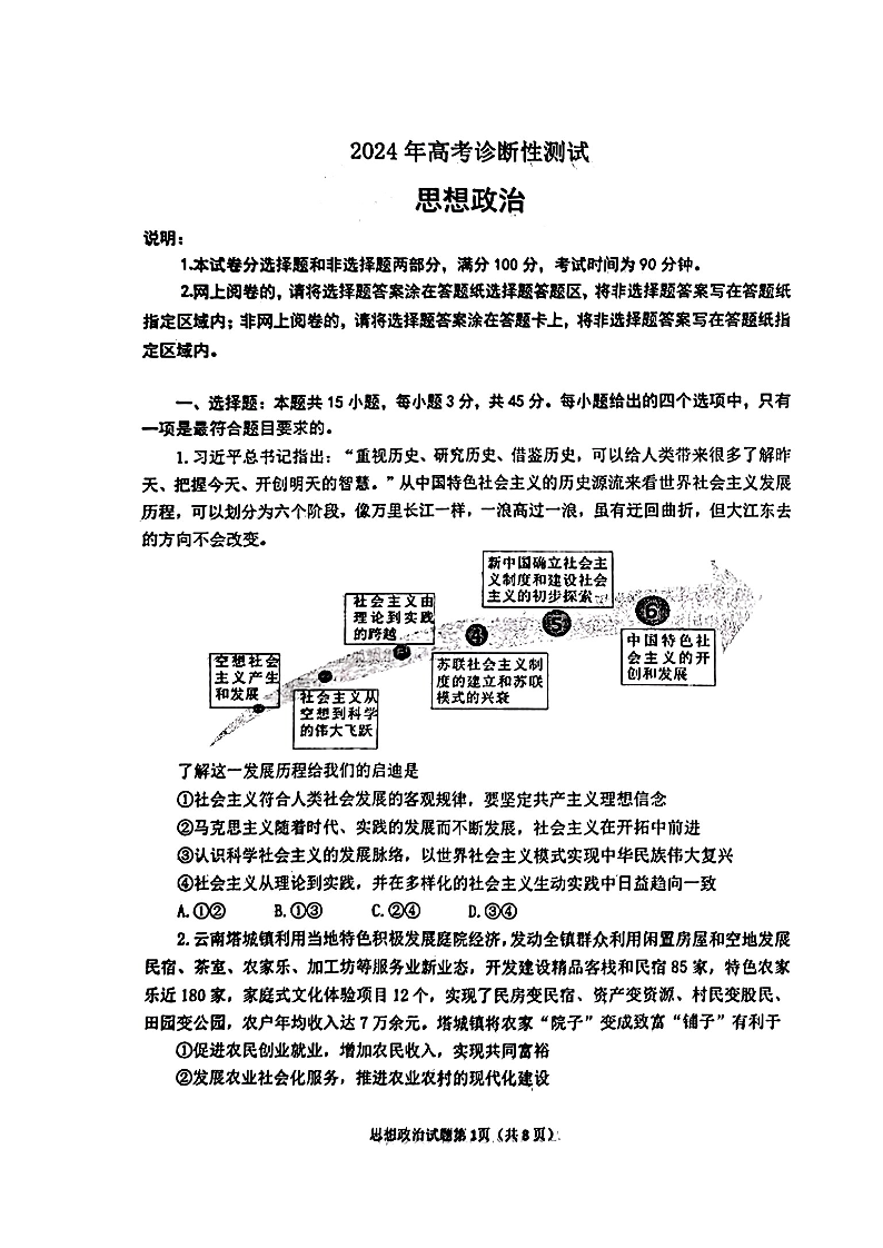 山东省烟台德州东营2024年高考诊断性测试(一模)政治