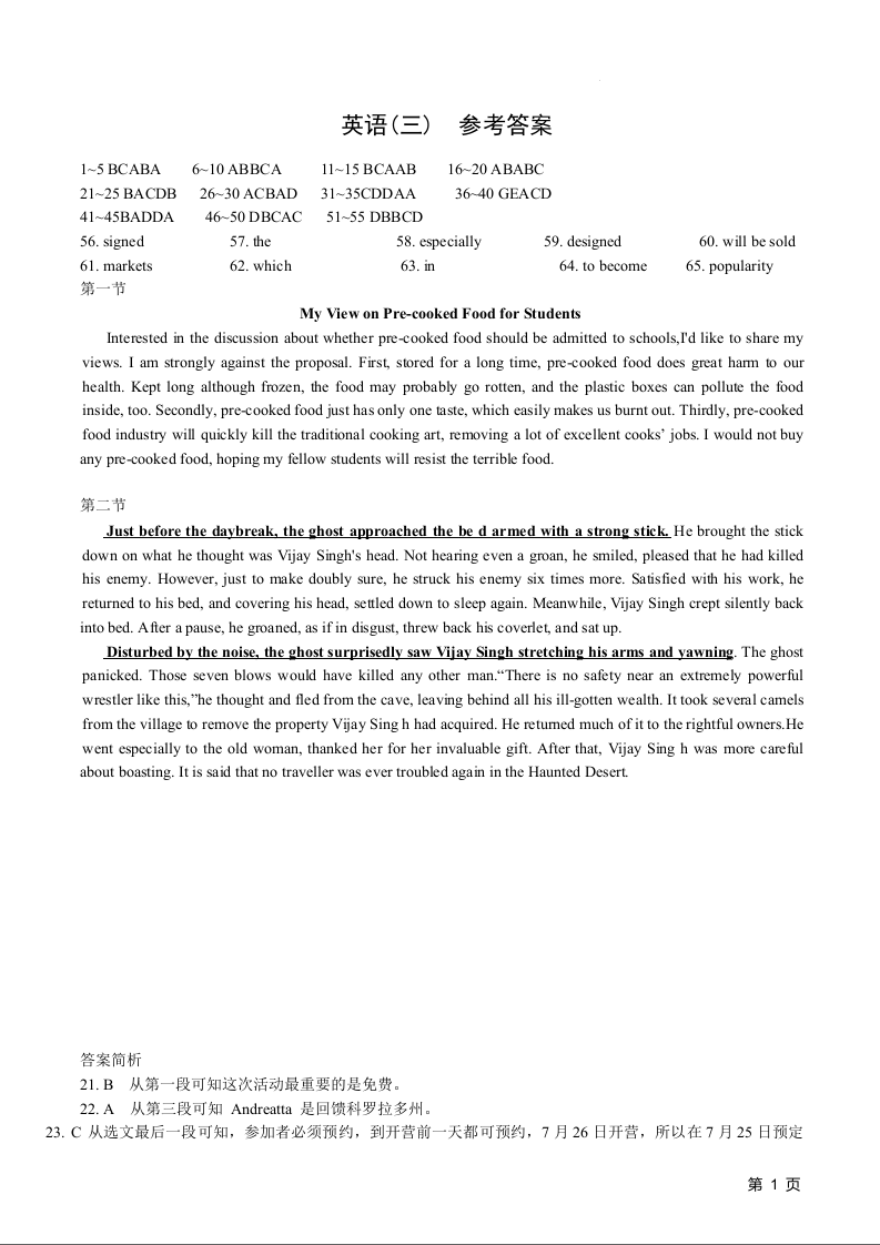 康德2024届重庆市普通高等学校招生全国统一考试高考模拟调研卷(三)英语答案