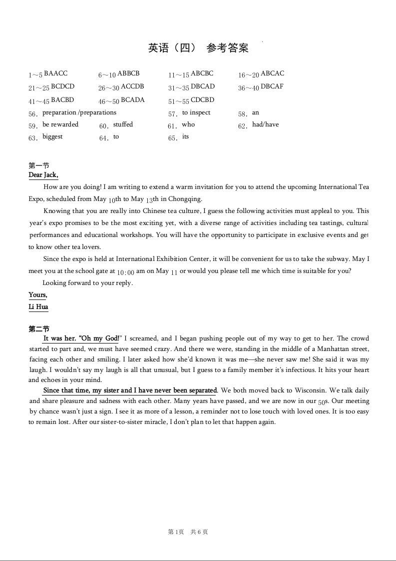 重庆市康德卷2024年普通高等学校招生全国统一考试高考模拟调研卷(四)英语答案