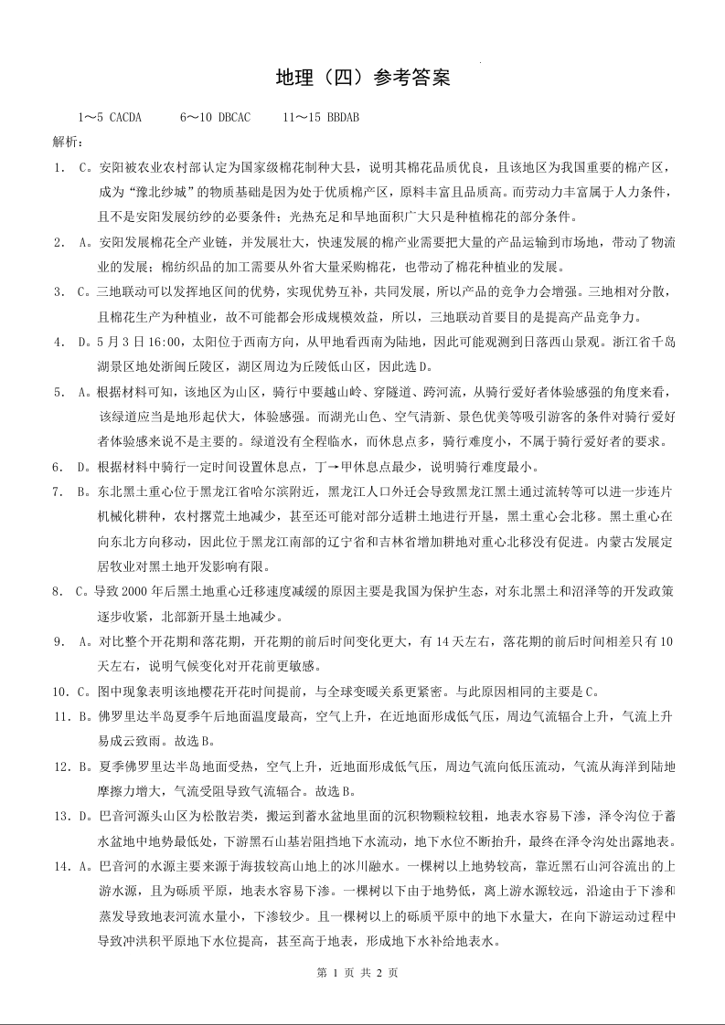 重庆市康德卷2024年普通高等学校招生全国统一考试高考模拟调研卷(四)地理答案