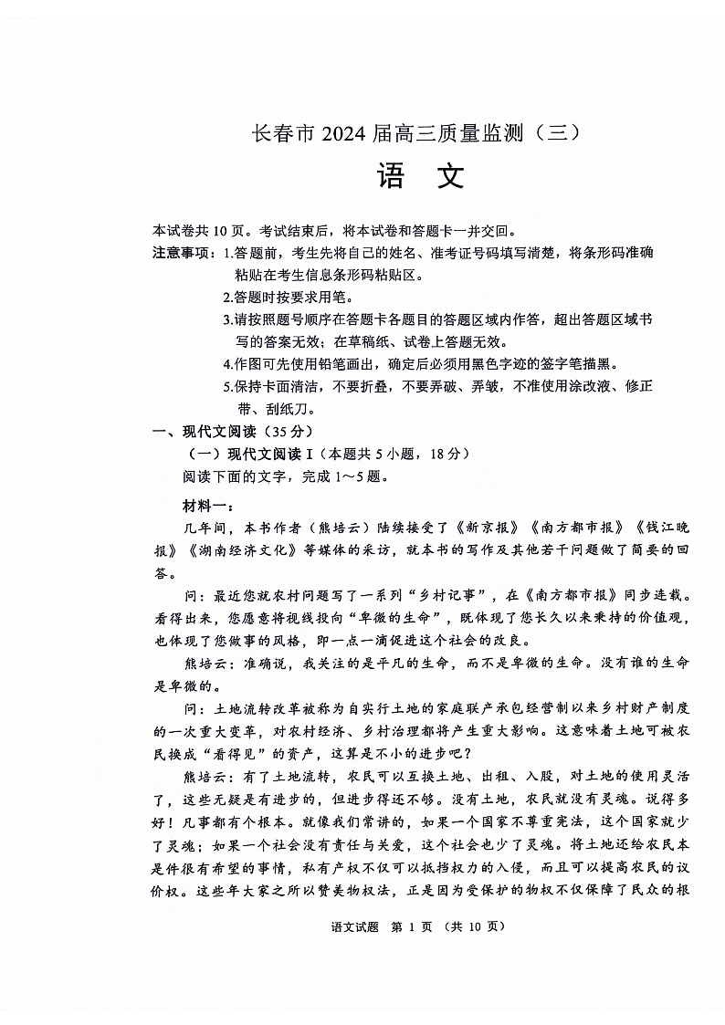 东北三省四市2024届教研联合体高考模拟(一)语文