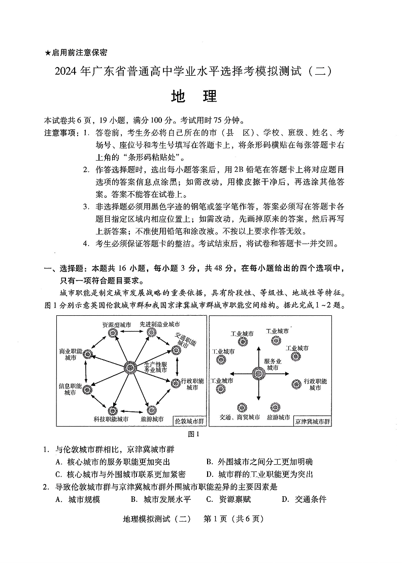 2024年广东省高三下学期普通高中学业水平选择考模拟考试(广东二模)地理+答案