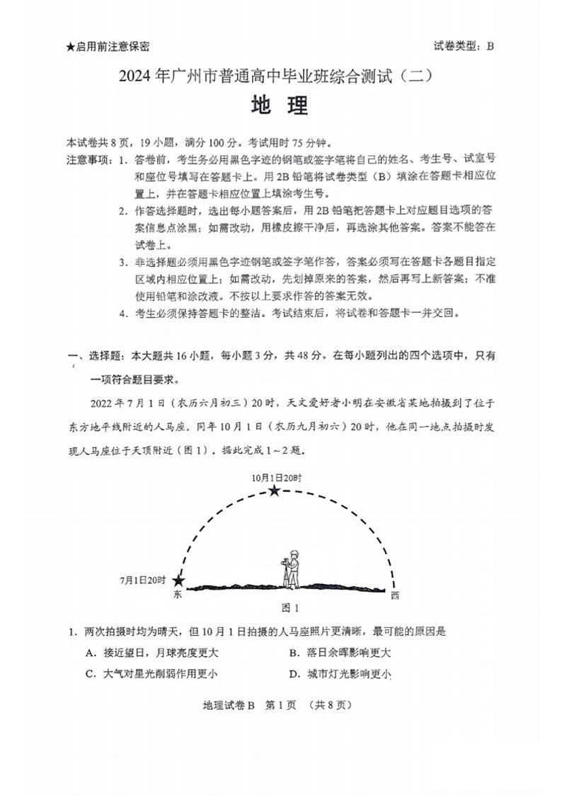 2024 年广州市普通高中毕业班综合测试(二)(广州二模)地理+答案