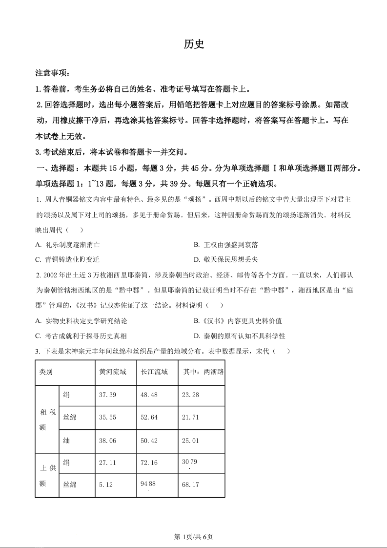 海南省海口市2024届高三下学期一模(4月调研)(海口一模)历史(原卷版)