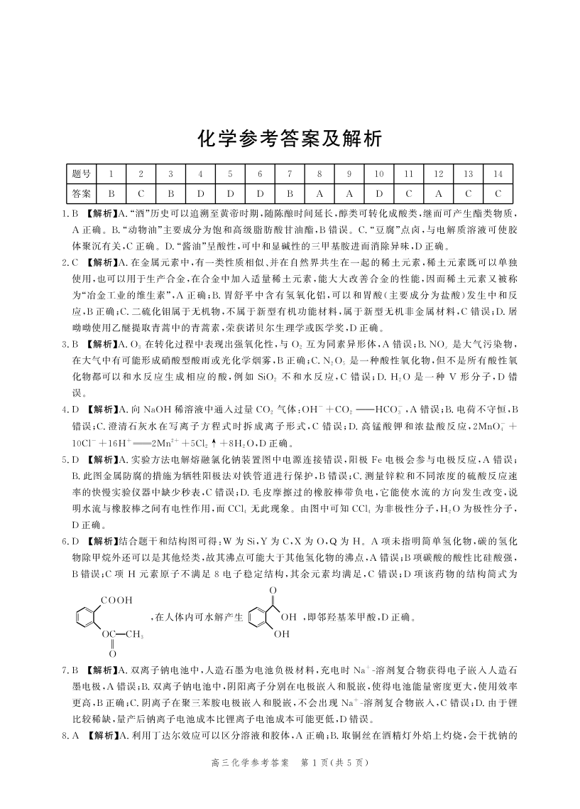 河北省2024届高三大数据应用调研联合测评(Ⅵ)化学答案