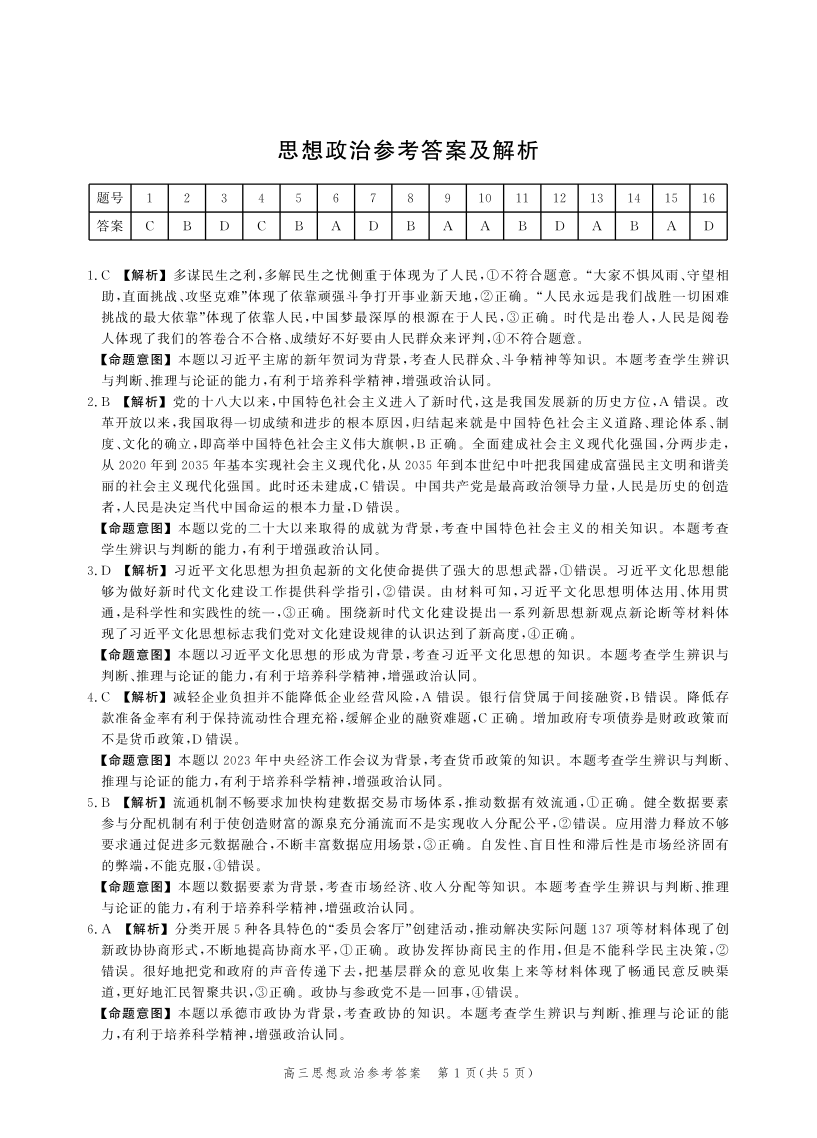 河北省2024届高三大数据应用调研联合测评(Ⅵ)政治答案