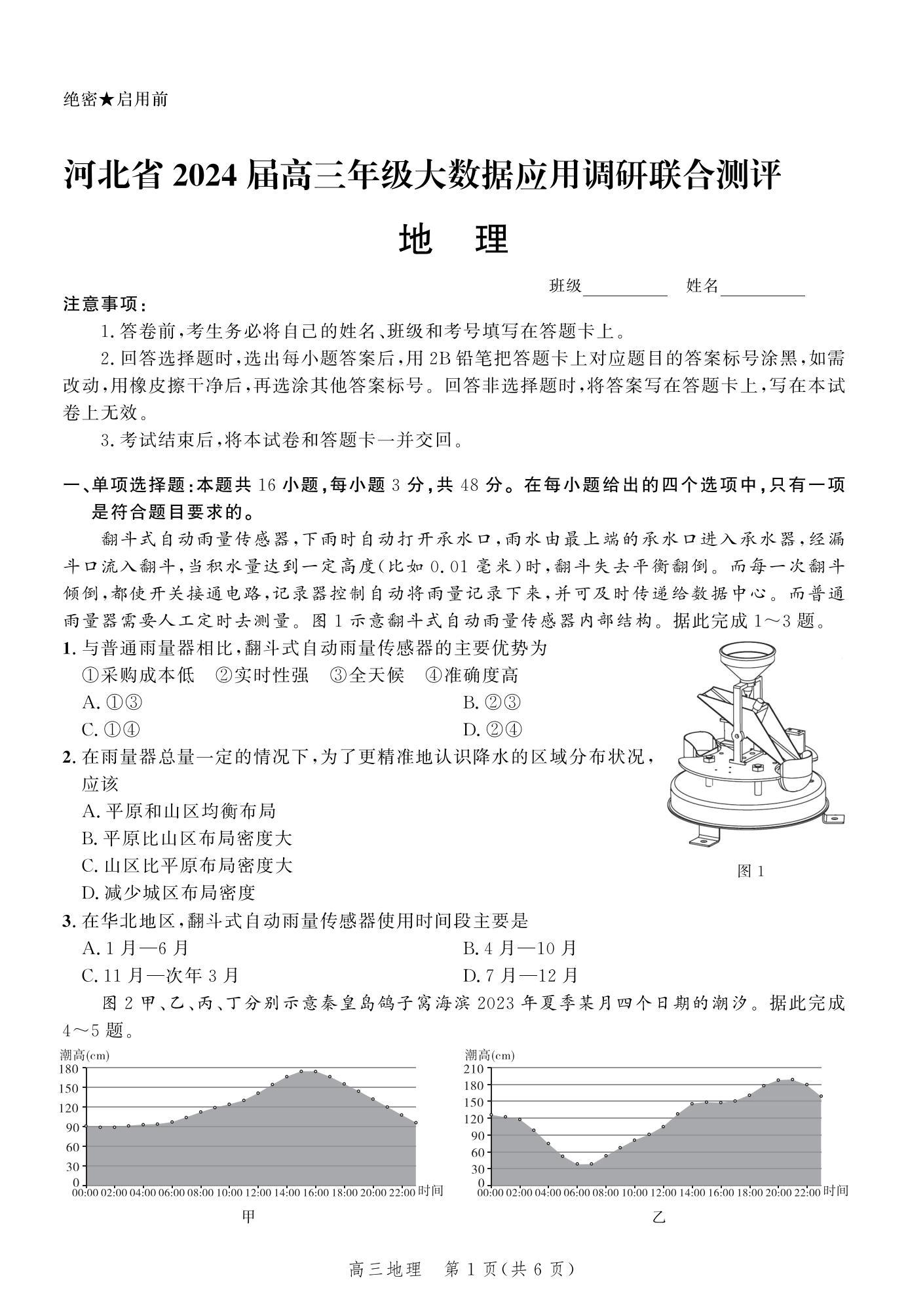 河北省2024届高三大数据应用调研联合测评(Ⅵ)地理