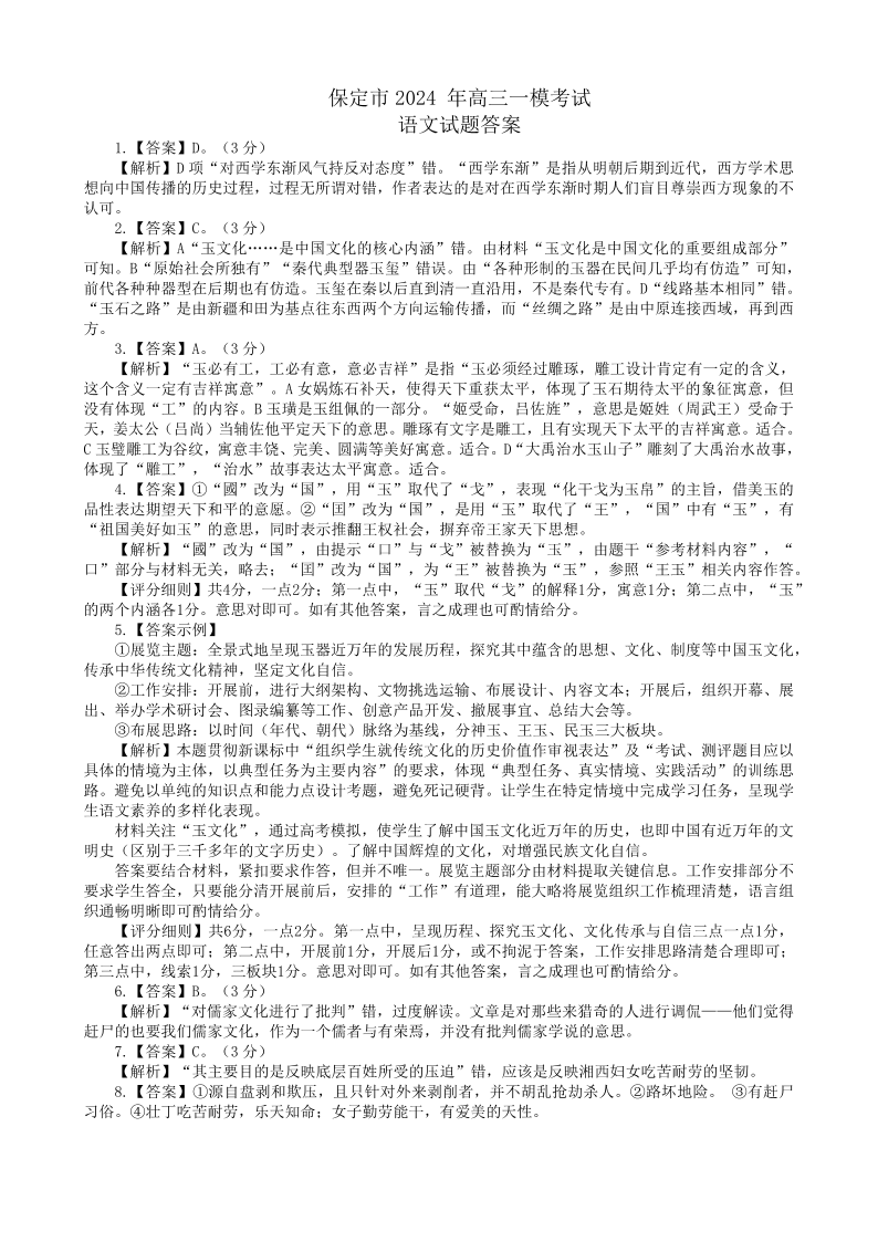 河北省保定邢台市2024年高三第一次模拟考试(保定邢台一模)语文答案