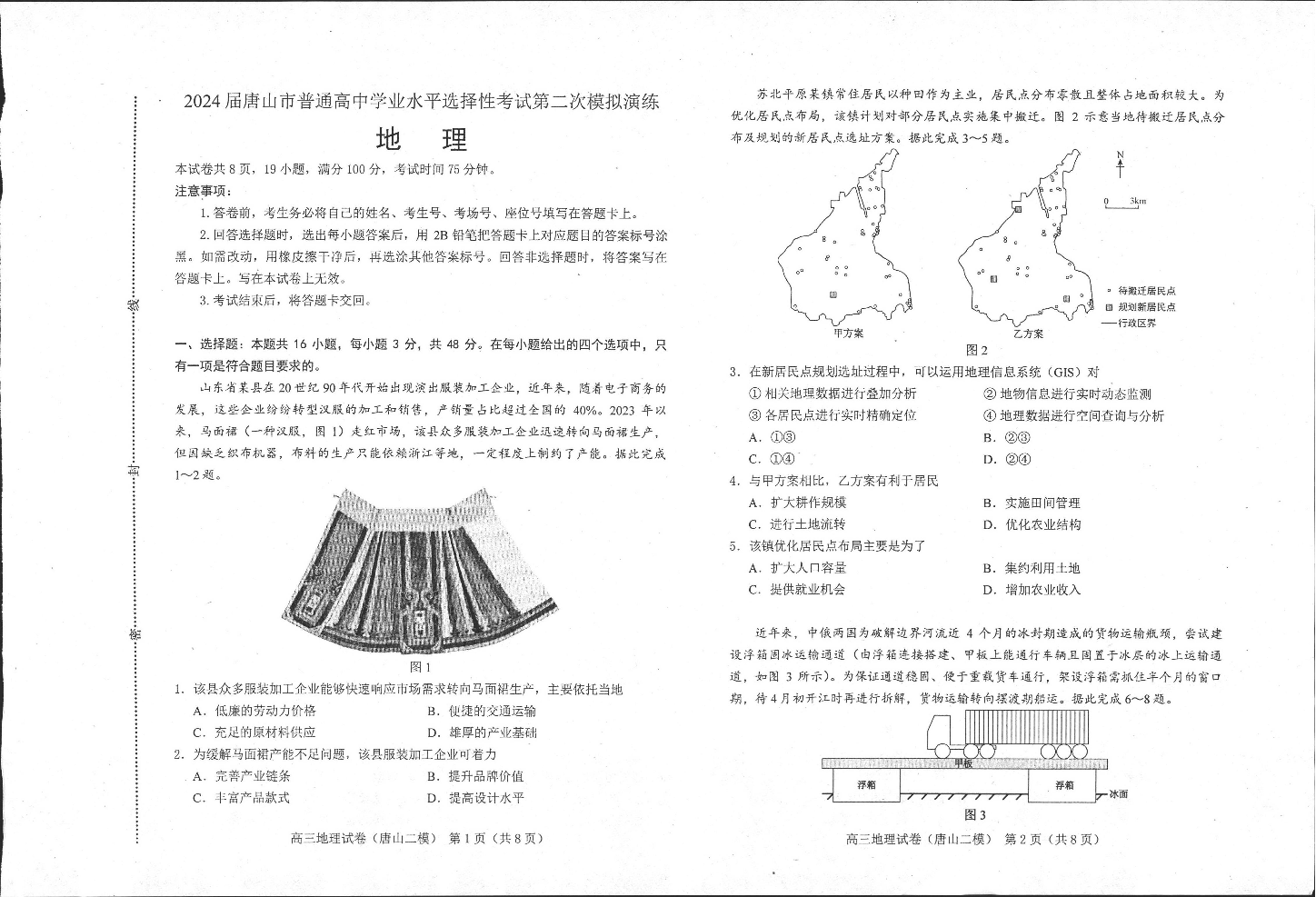 河北省唐山市2024届高三下学期二模考试(唐山二模)地理