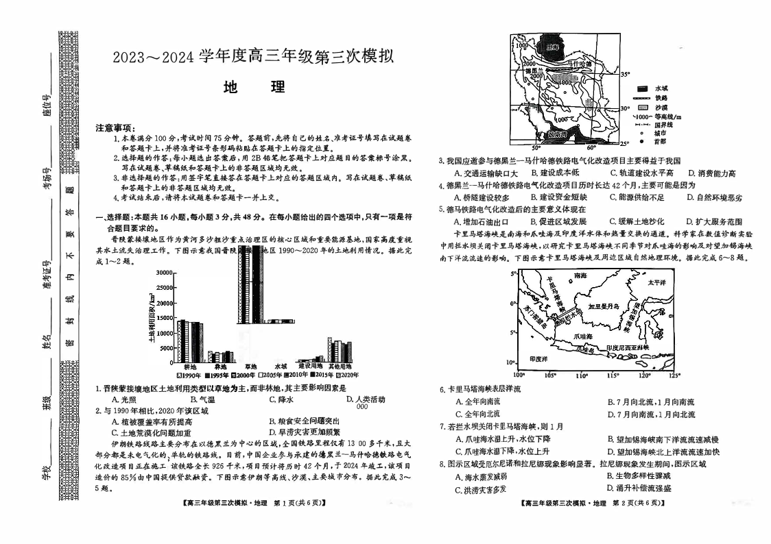 黑龙江省部分学校2024届高三下学期第三次模拟地理
