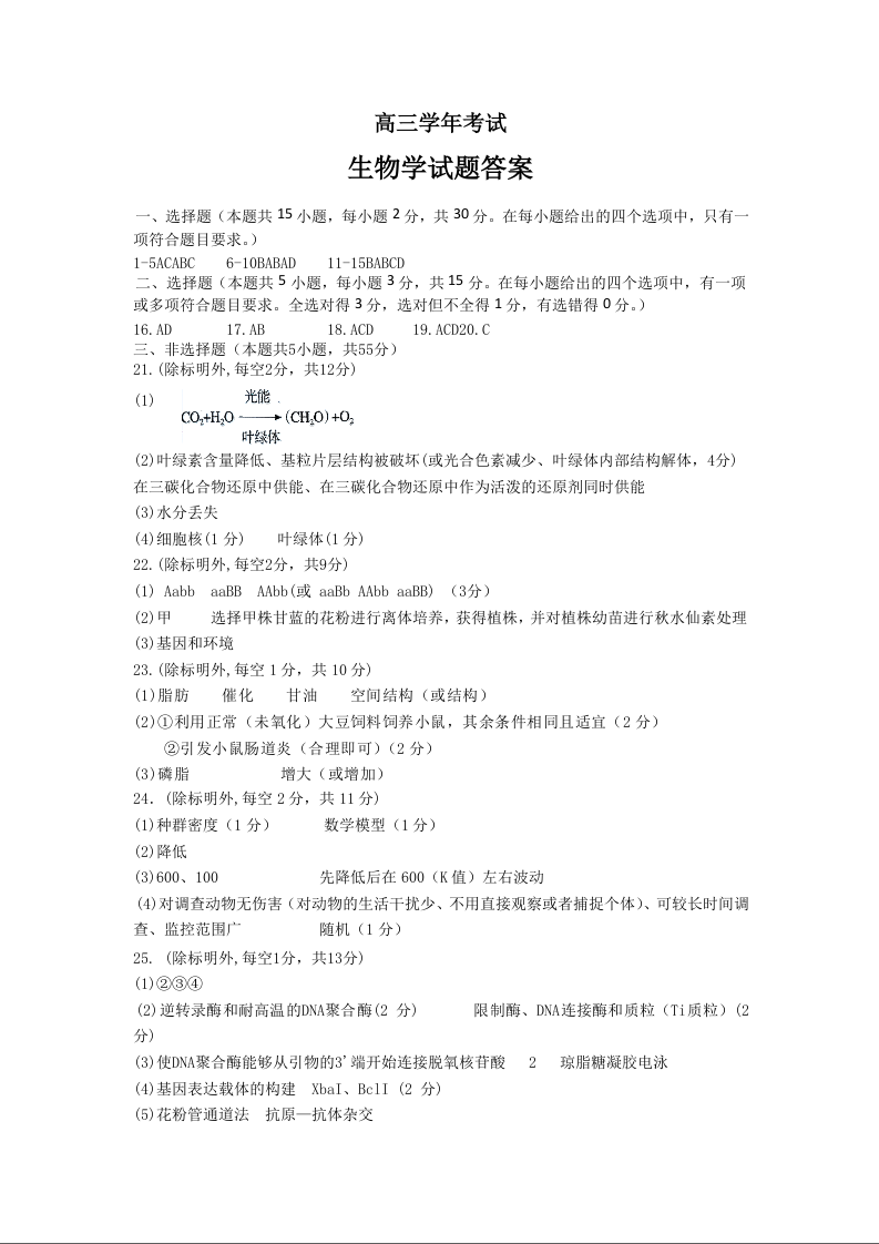 黑龙江省牡丹江市普通高中协同发展共同体2024届高三下学期第一次模拟考试生物答案