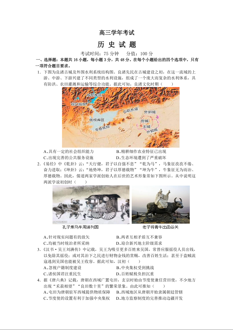 黑龙江省牡丹江市普通高中协同发展共同体2024届高三下学期第一次模拟考试历史+答案