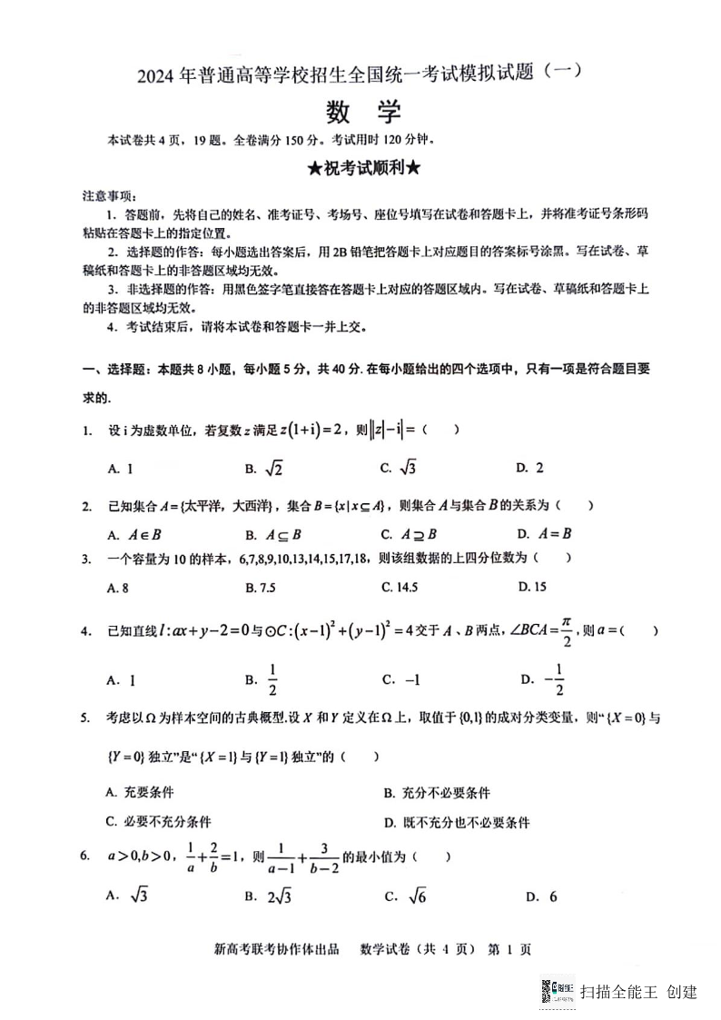 湖北省新高考协作体2024届高三下学期一模考试数学(解析版)