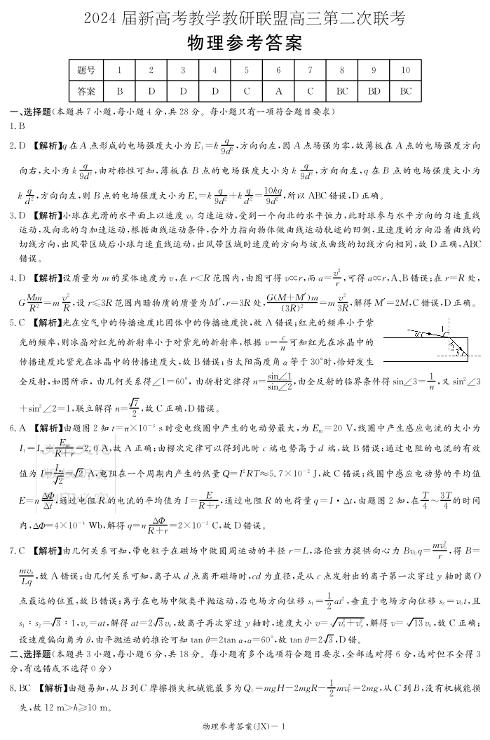 湖南新高考教学教研联盟2024届(暨长郡十八校)高三第二次联考物理答案