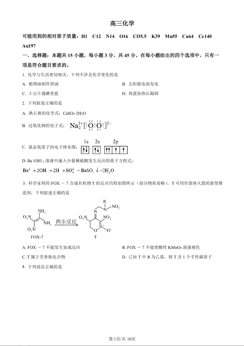 吉林省通化市梅河口市第五中学2024届高三下学期一模化学(原卷版)