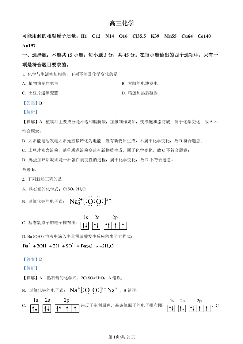 吉林省通化市梅河口市第五中学2024届高三下学期一模化学(精品解析版)