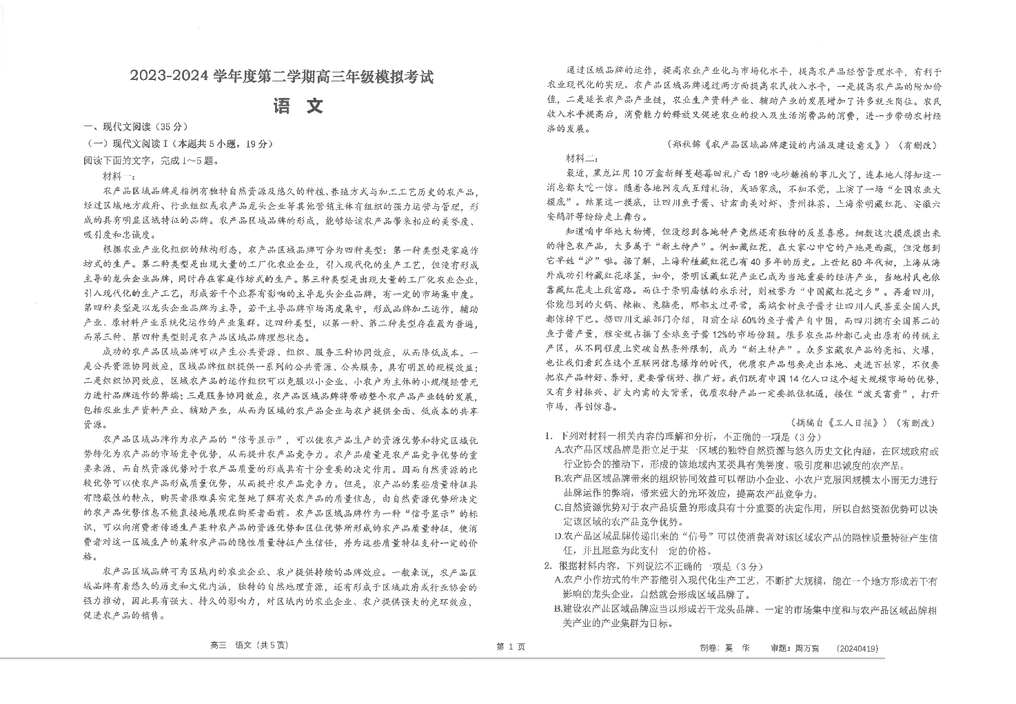 江苏省南通市2024届海安高级中学高三下学期第二次模拟考试语文+答案