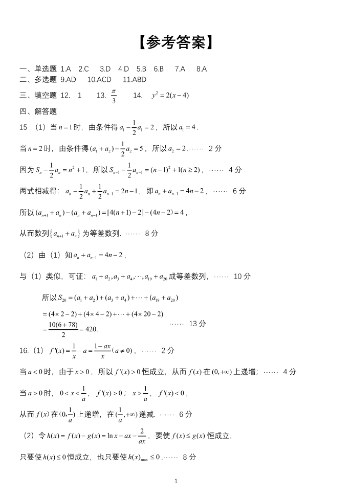 江苏省南通市如皋市2024届高三下学期适应性考试(二)(南通2.5模)数学答案
