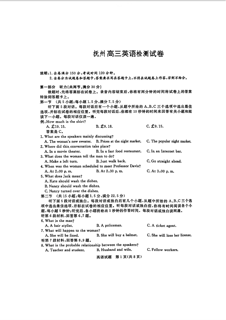 江西省恩博2024年高三4月联考(赣抚吉)英语+答案