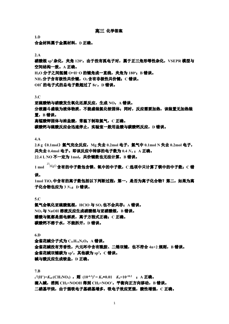 江西省恩博2024年高三4月联考(赣抚吉)化学答案