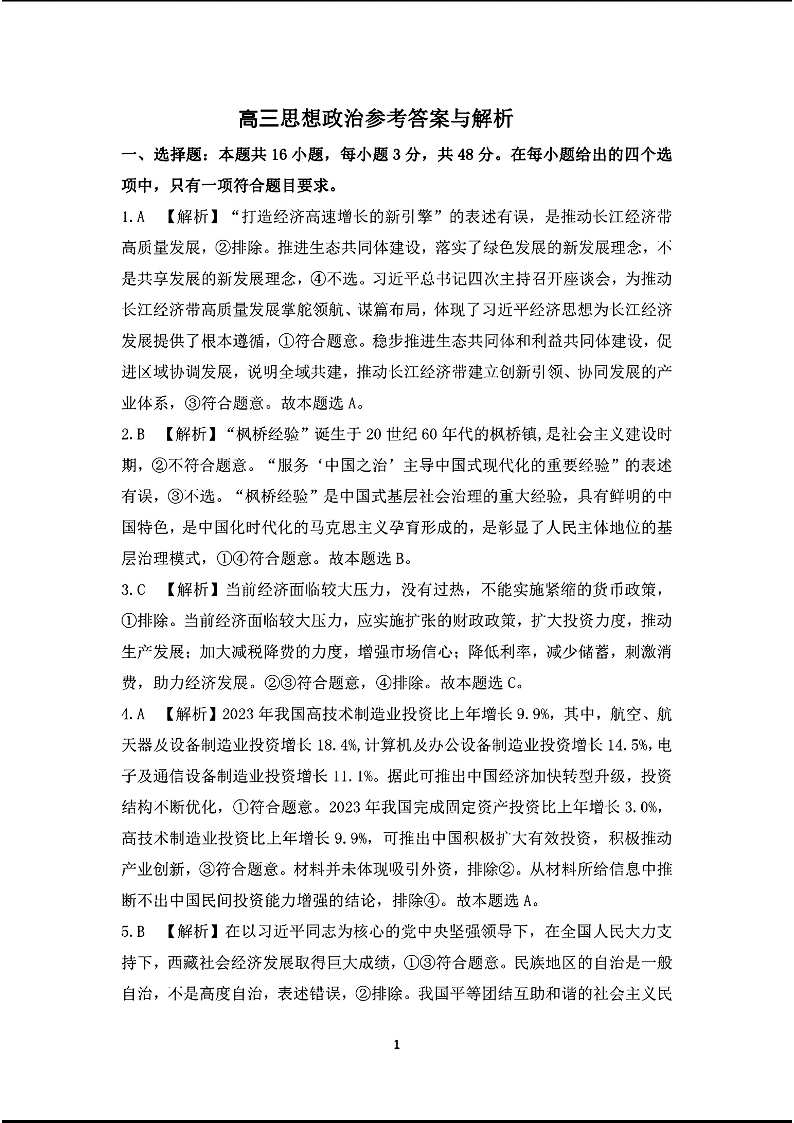 江西省恩博2024年高三4月联考(赣抚吉)政治答案