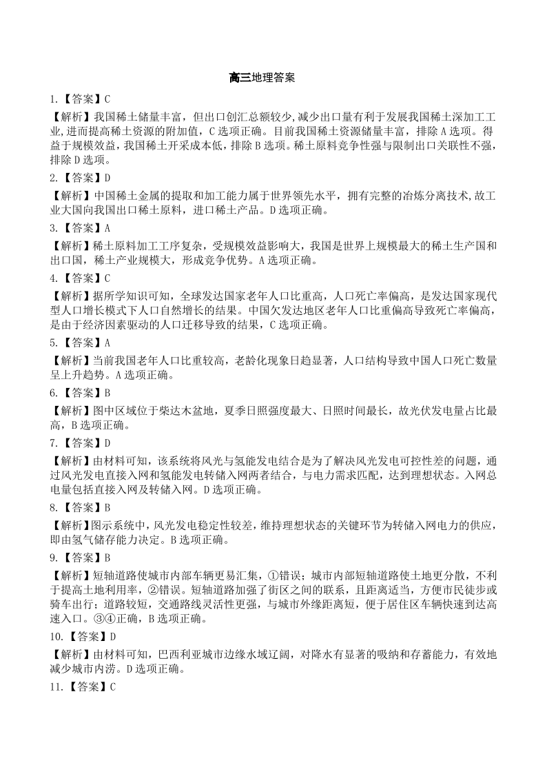 江西省恩博2024年高三4月联考(赣抚吉)地理答案