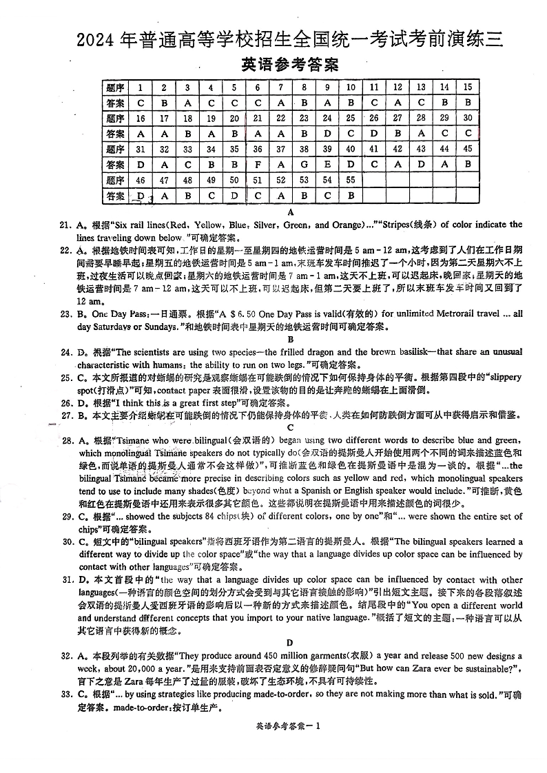 江西省南昌市2024届高三下学期二模考试(南昌二模)英语答案