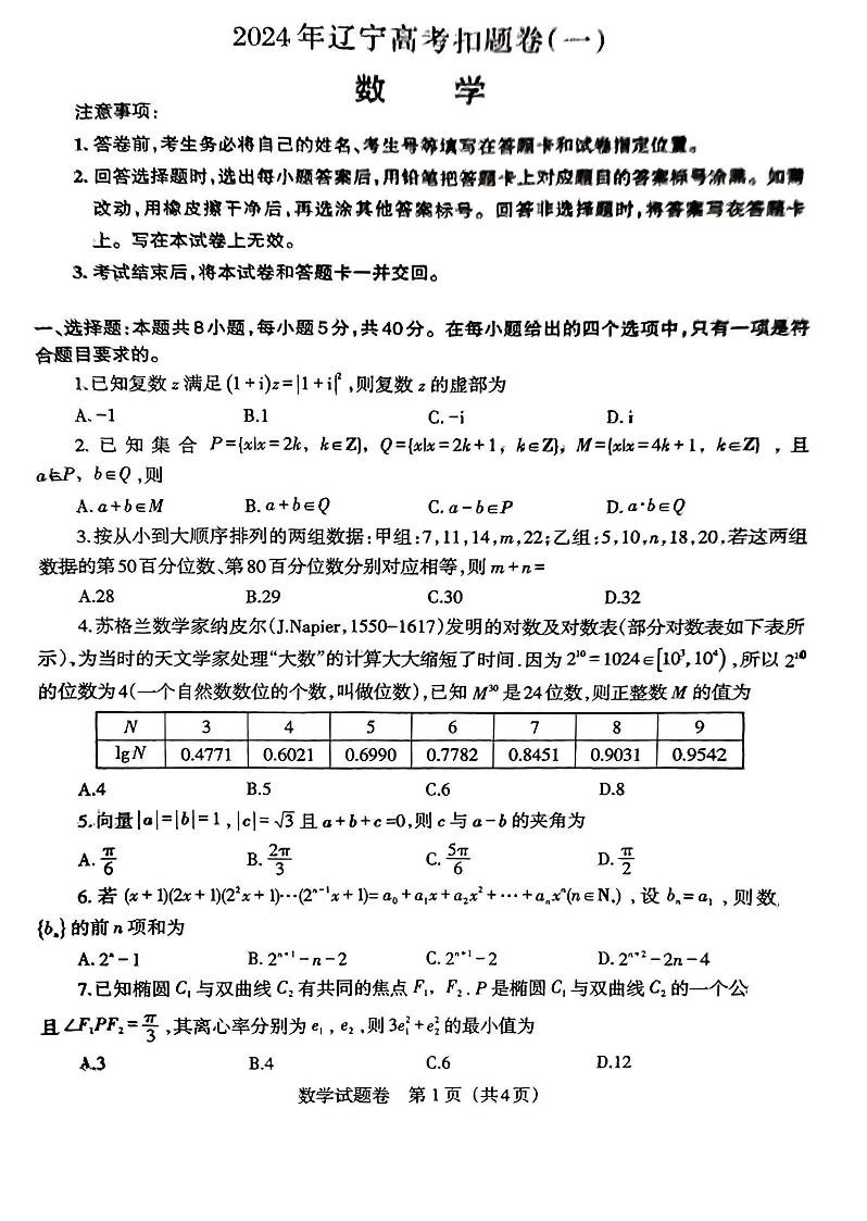2024届辽宁省高三下学期高考扣题(一)数学+答案