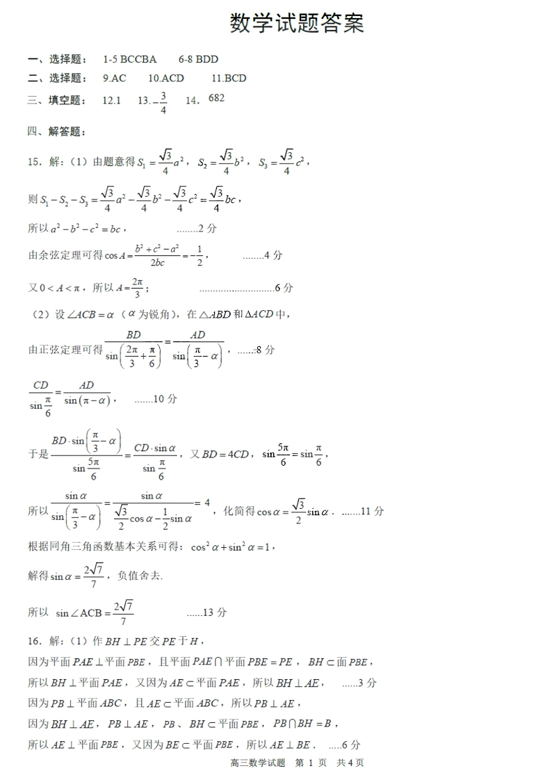山东省日照市2024届高三下学期4月校际联合考试(日照二模)数学答案