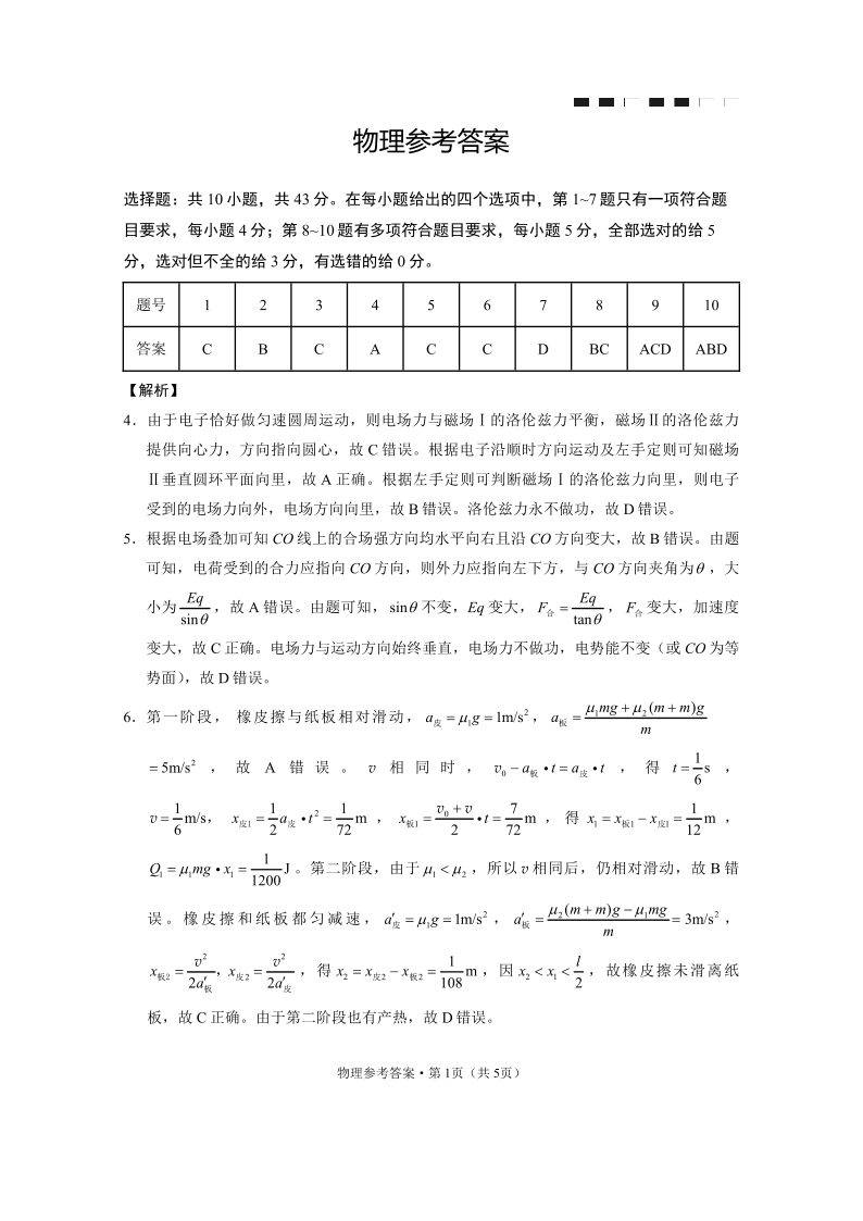 重庆市巴蜀中学2024届高考适应性月考卷(九)物理答案