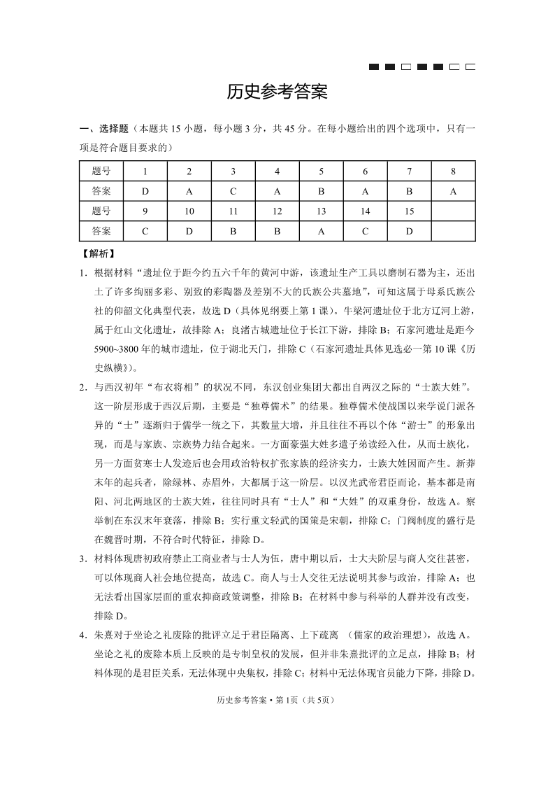 重庆市巴蜀中学2024届高考适应性月考卷(九)历史答案