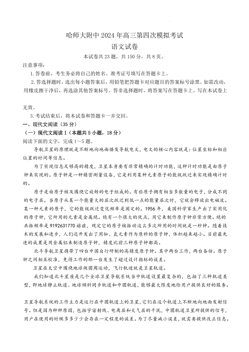 东北三省三所百强校2024届高三下学期第四次联合模拟考语文+答案