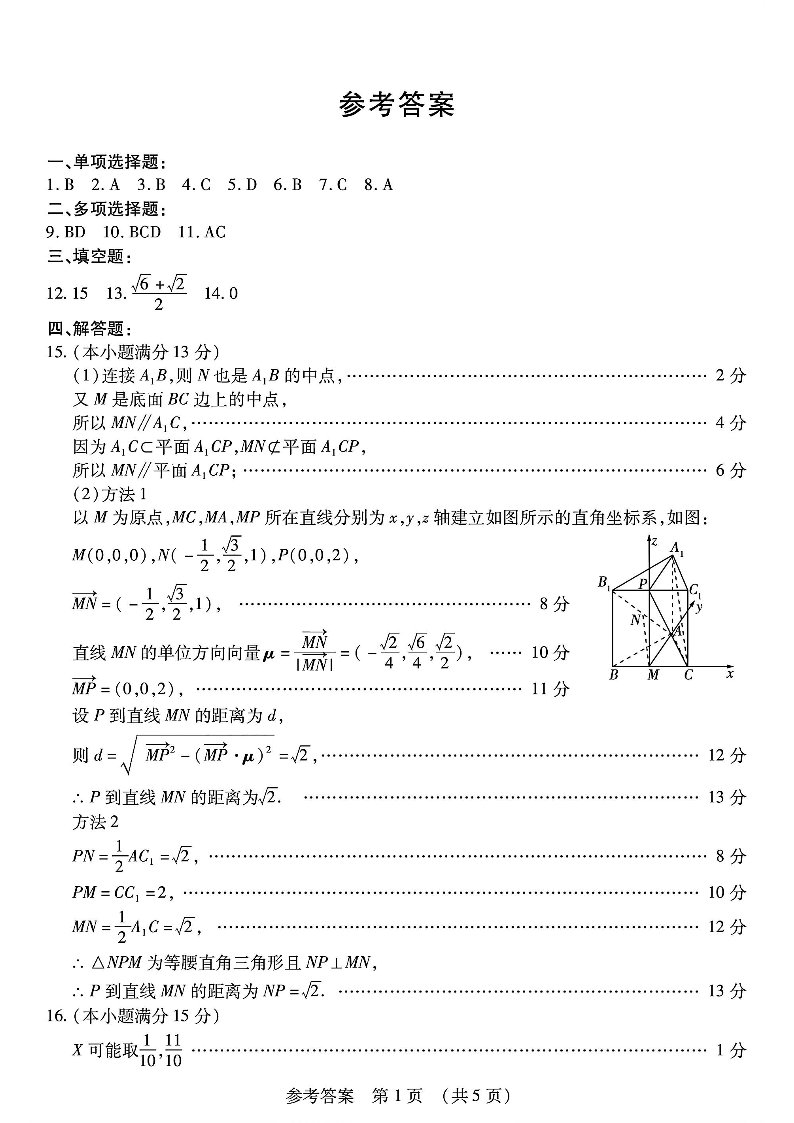 东北三省四市教研联合体2024届高三下学期二模考试数学答案