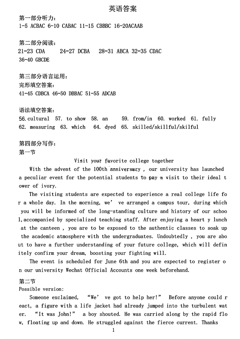 东北三省四市教研联合体2024届高三下学期二模考试英语答案