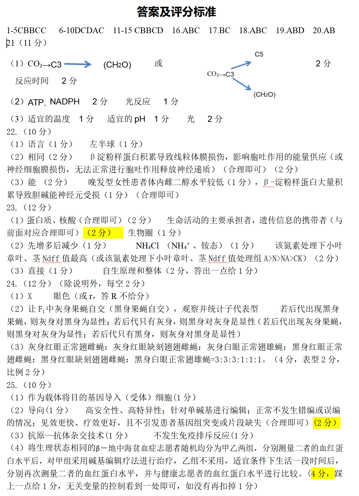 东北三省四市教研联合体2024届高三下学期二模考试生物答案