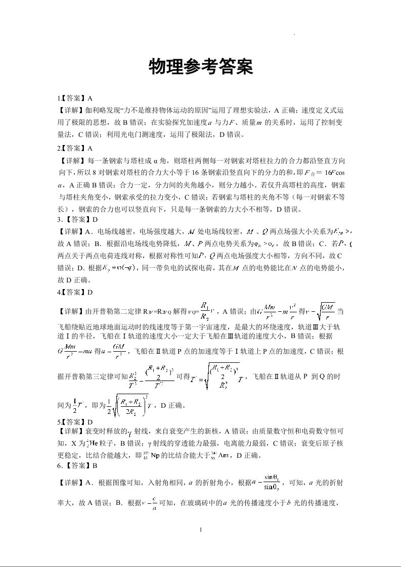 广西省2024届高三5月仿真考物理答案