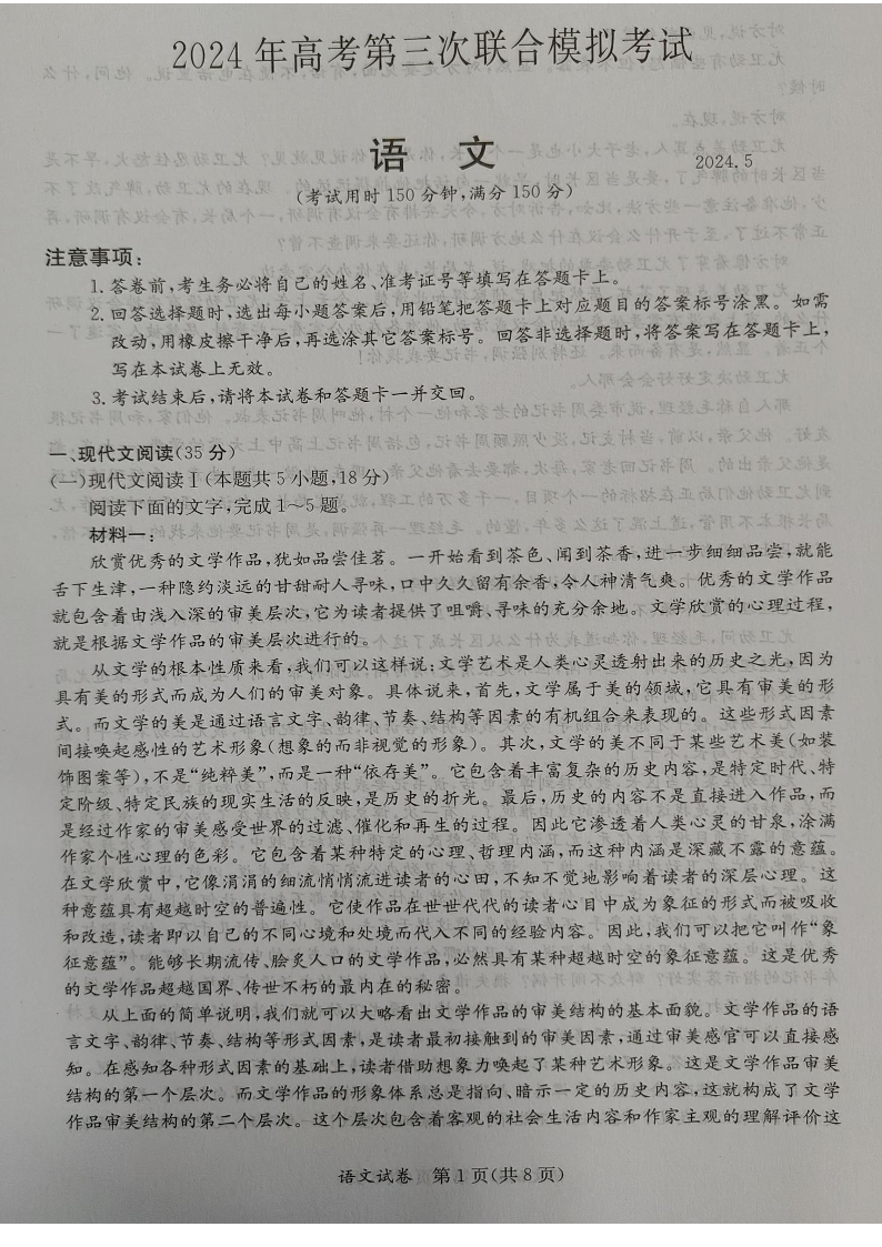 广西省桂林、来宾、北海2024届高三三模语文