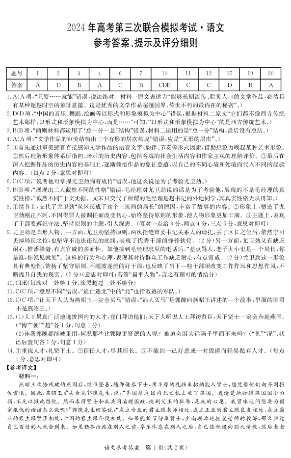 广西省桂林、来宾、北海2024届高三三模语文答案