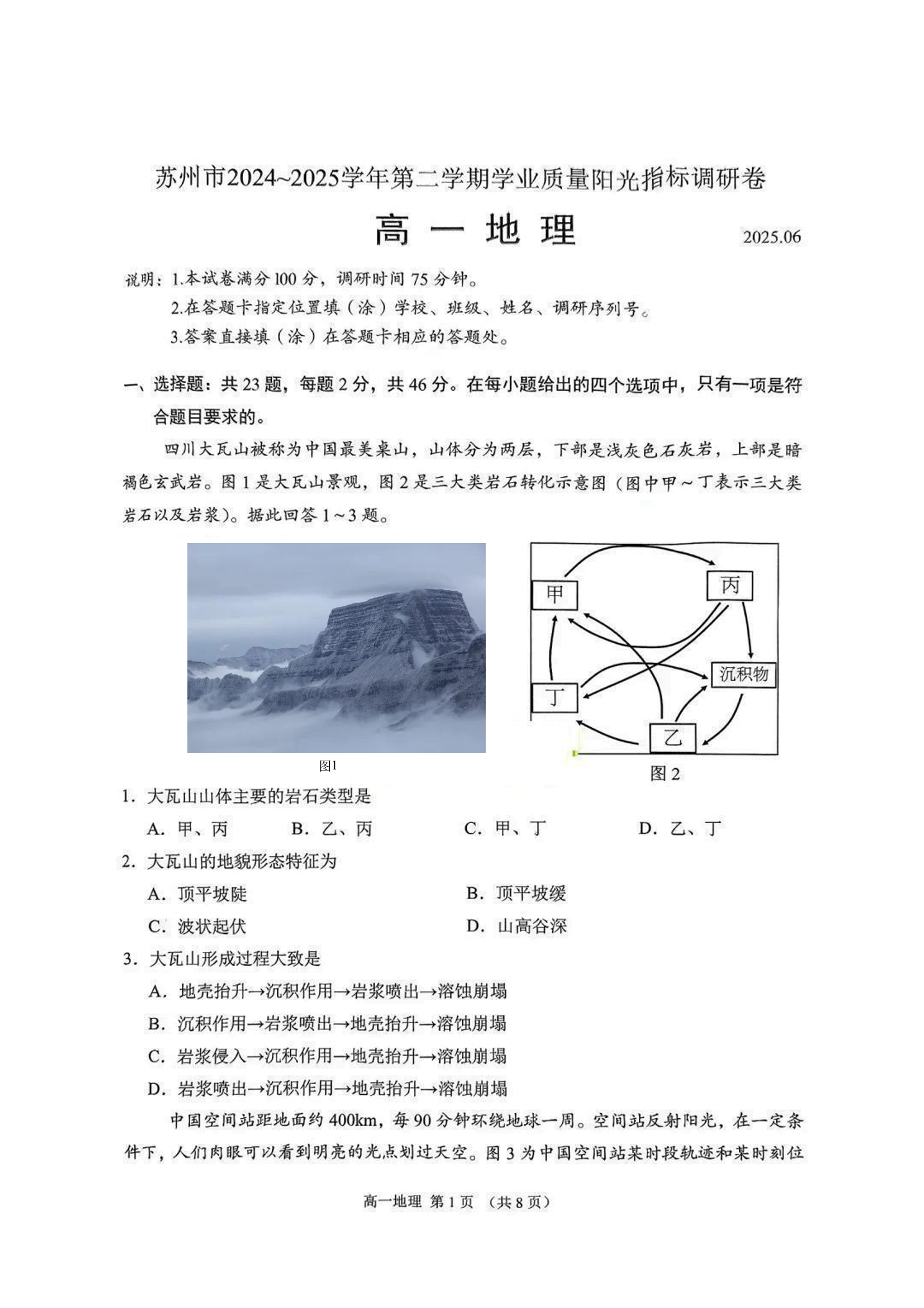 江苏省苏州市2024-2025学年高一下学期学业质量阳光指标调研地理