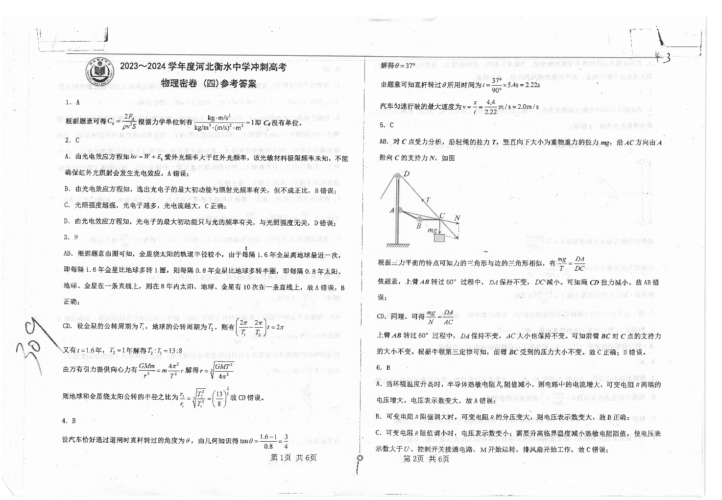 河北省衡水中学2024届高三下学期高考押题密卷(四)物理答案