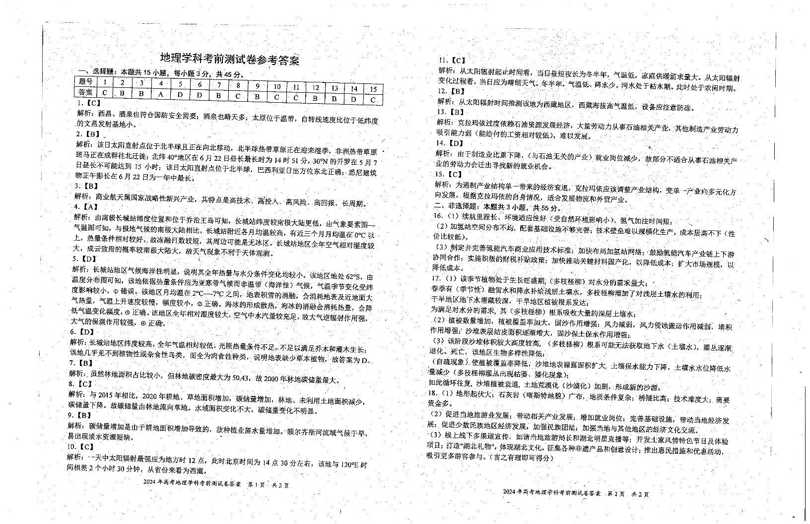 湖北省武汉市华中师范大学第一附属中学高三考前素养测试卷地理答案