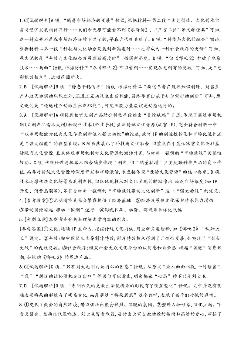 吉林省白山市抚松县第一中学2024-2025学年高二下学期6月月考语文答案