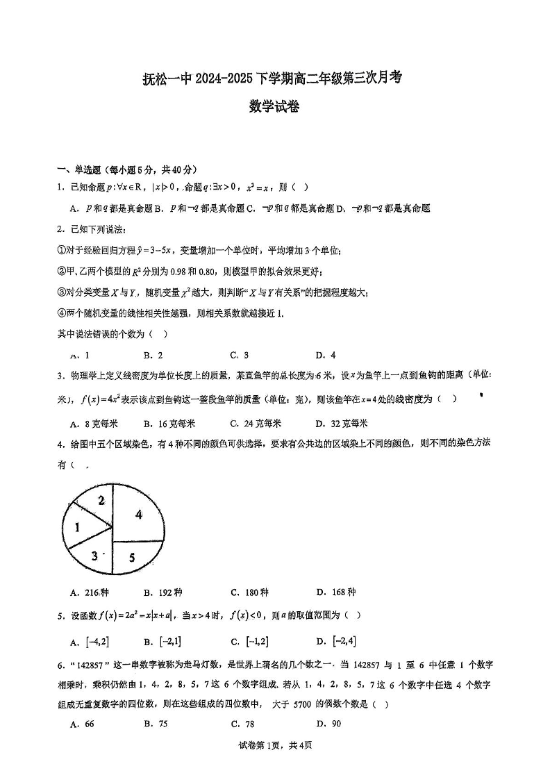 吉林省白山市抚松县第一中学2024-2025学年高二下学期6月月考数学