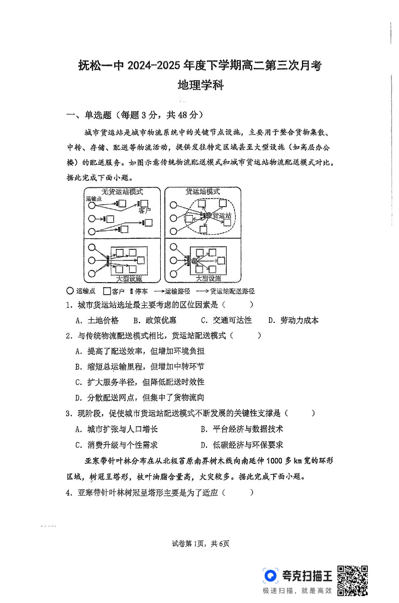 吉林省白山市抚松县第一中学2024-2025学年高二下学期6月月考地理