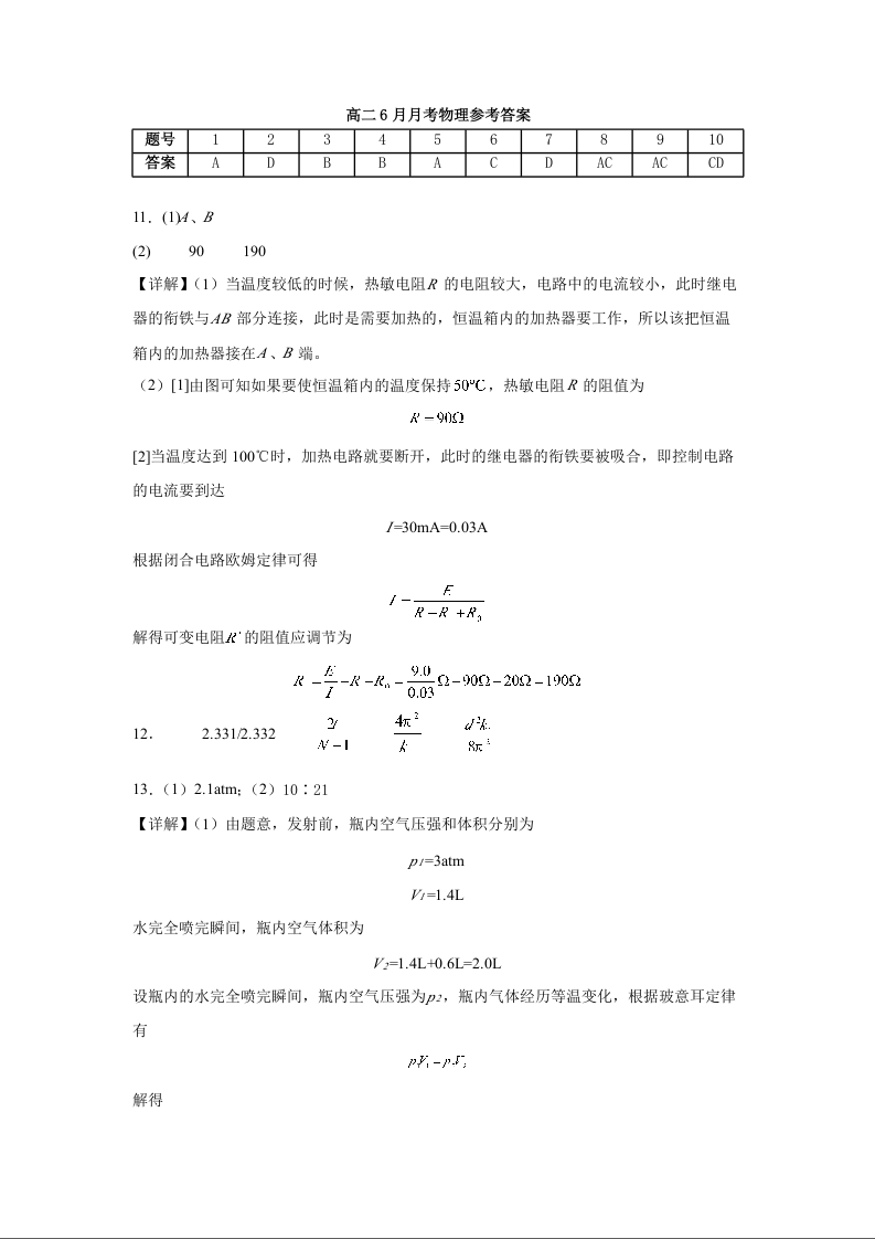 湖北省荆州中学2024-2025学年高二下学期6月月考试题物理答案