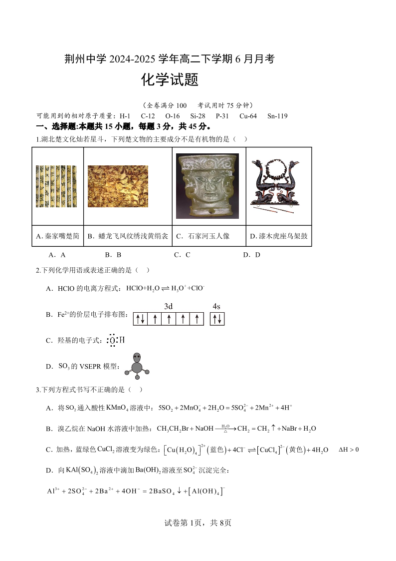 湖北省荆州中学2024-2025学年高二下学期6月月考试题化学