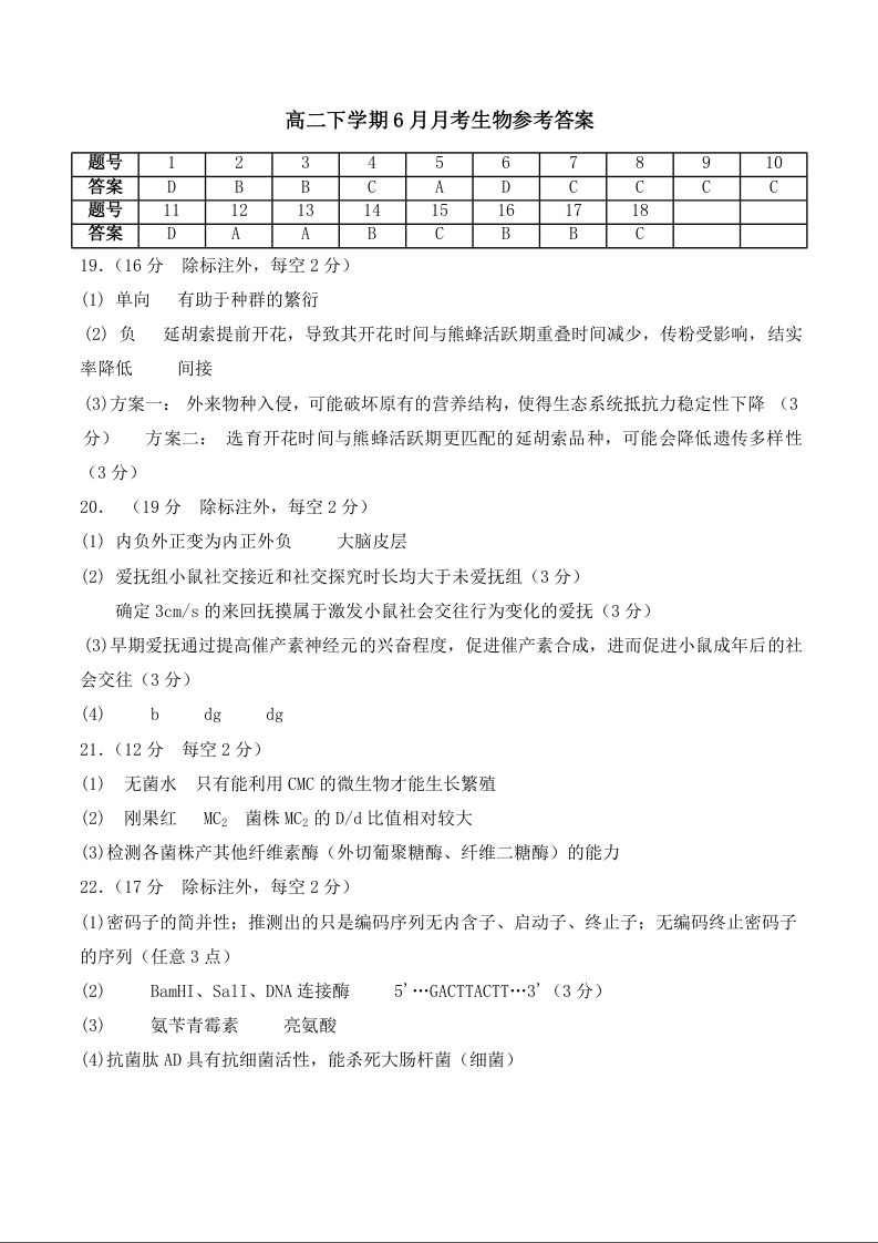 湖北省荆州中学2024-2025学年高二下学期6月月考试题生物答案