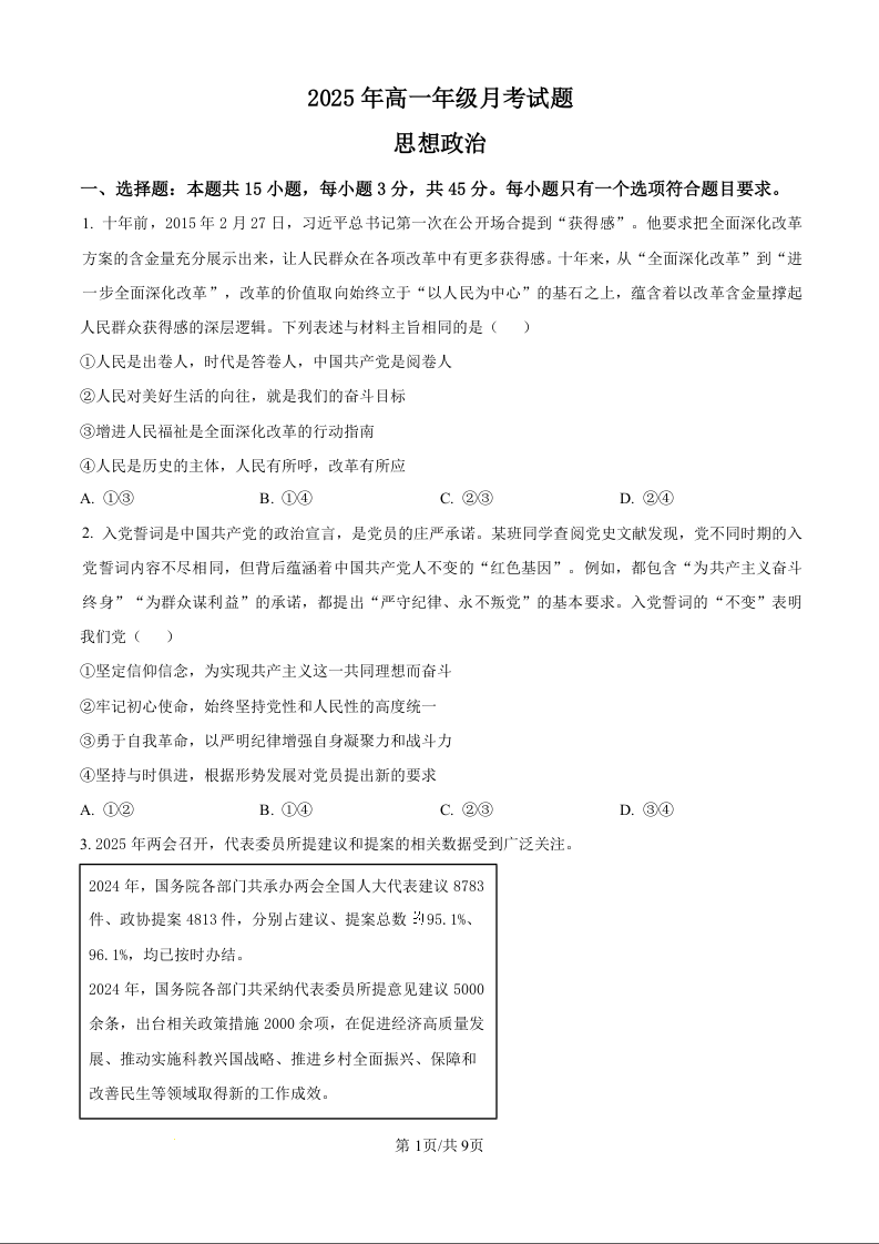 山东省德州市夏津育中万隆中英文高级中学2024-2025学年高一下学期6月月考政治(原卷版)
