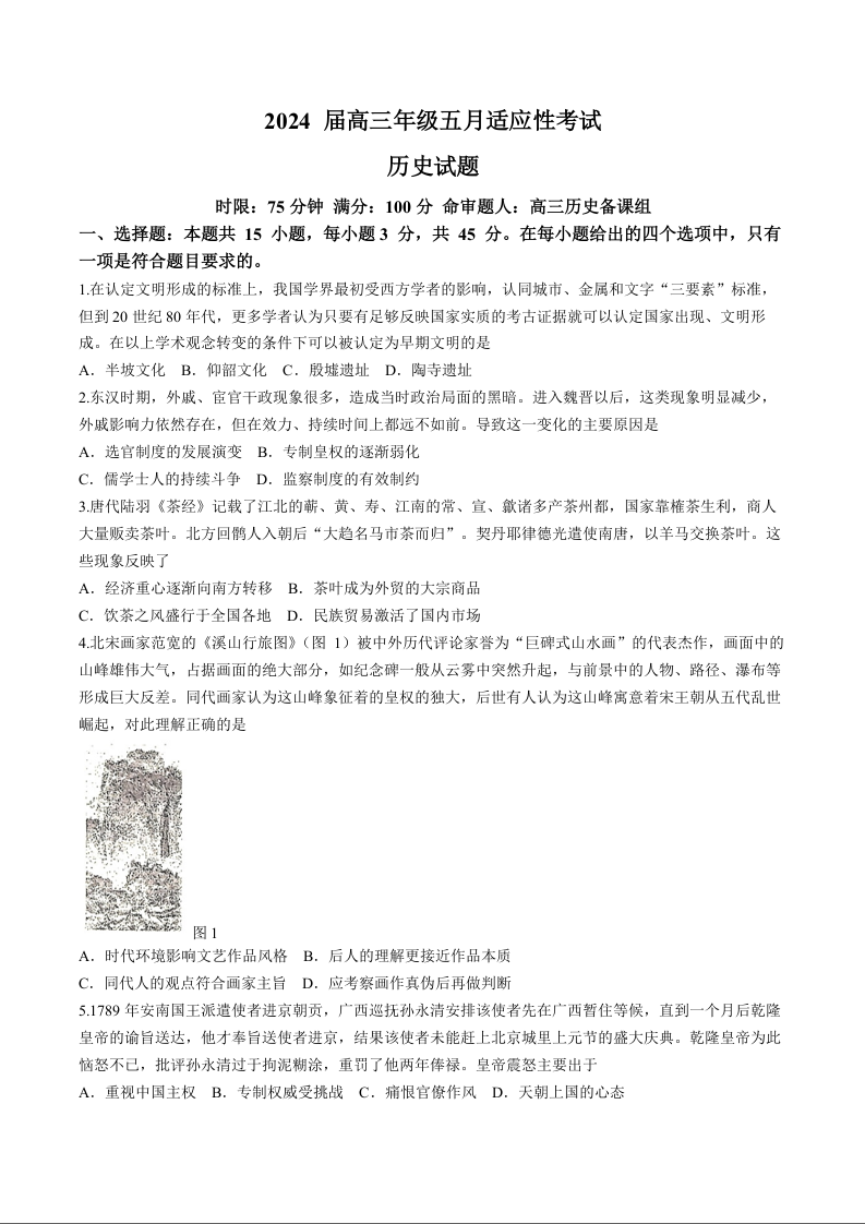 湖北省武汉市华中师范大学第一附属中学高三五月适应考历史+答案