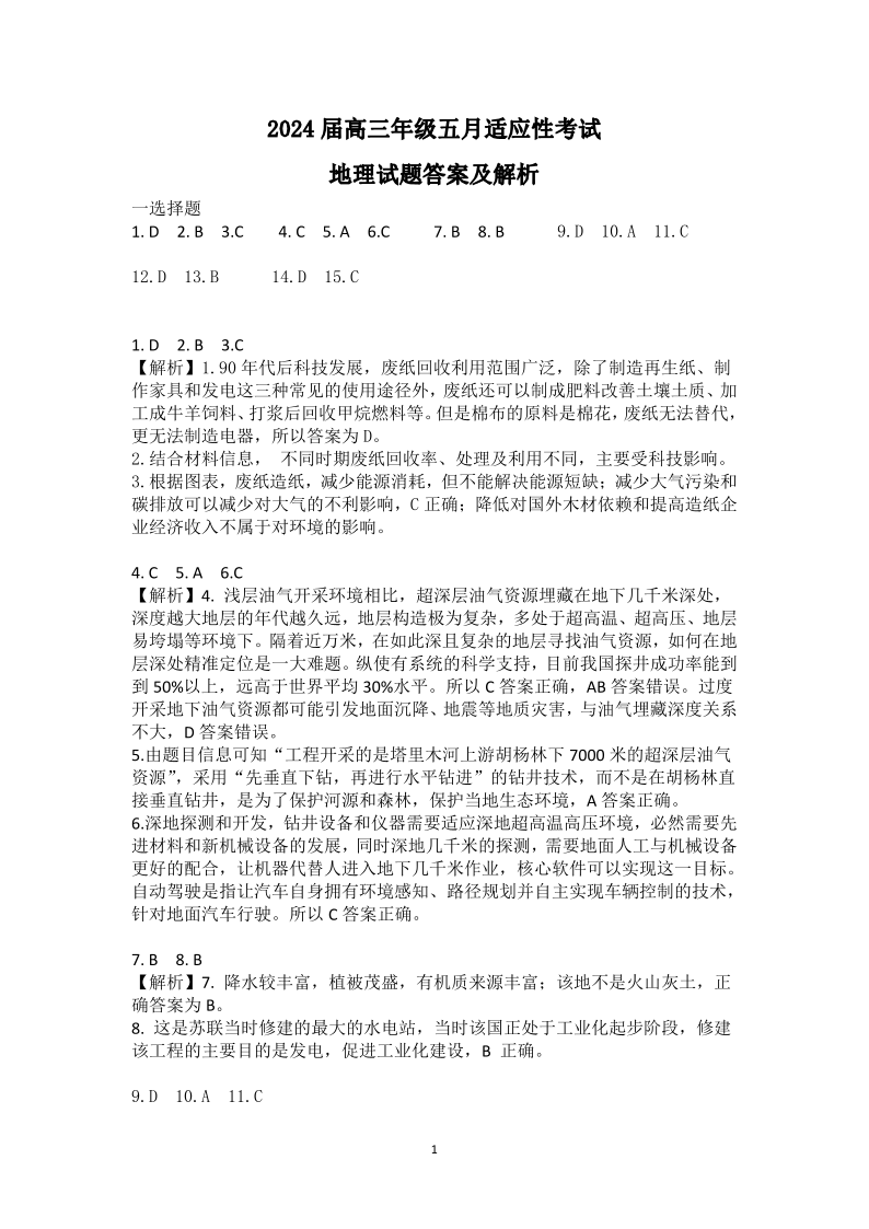湖北省武汉市华中师范大学第一附属中学高三五月适应考地理答案